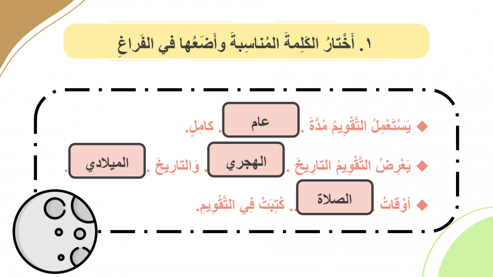 • (ملف تفاعلي-تقويم الدرس السابق) لربط الدروس ببعضها.