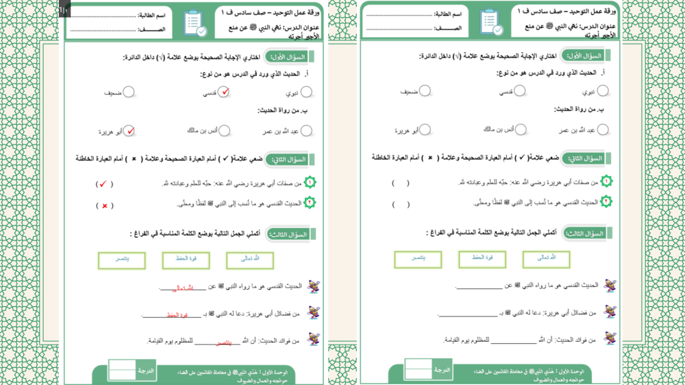 دراسات إسلامية سادس-الفصل الدراسي الأول